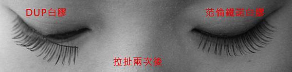 其實在黏性來講他並不會有太超越DUP的點,甚至可以說DUP在第一次黏性上黏性也大於范倫鐵諾,但是頭髮要二次迴盪,睫毛也要二次回黏。偶而在路上不小心眼頭眼尾彈起來,沒辦法補妝偏偏睫毛膠又已經不黏的時候,二次回黏就非常的重要