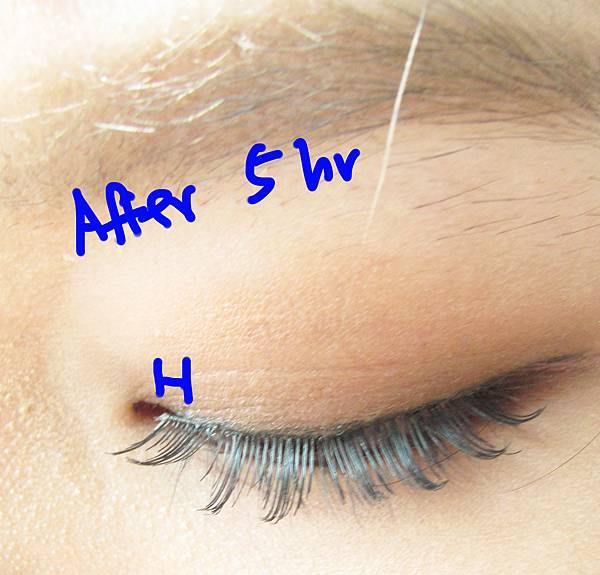 五小時後,睫毛有分段(睡覺時壓到前面,已經彈跳了)