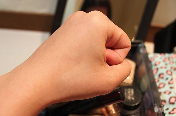 三號整個混色以後是淡黃色,大部分一般人無從比較的情況下的心得,就是一個很自然的提亮感,對膚色來說不會突兀,但因為它白色部分太多,遇過眼尖的前輩覺得不夠貼膚色,在櫃上有試用124號,感覺都偏日系粉,個人不喜歡粉色,所以最後來是選了三號。下圖是上了三層以後才拍得出來的結果。(以下圖片通通都是上三層以上才拍出來的)